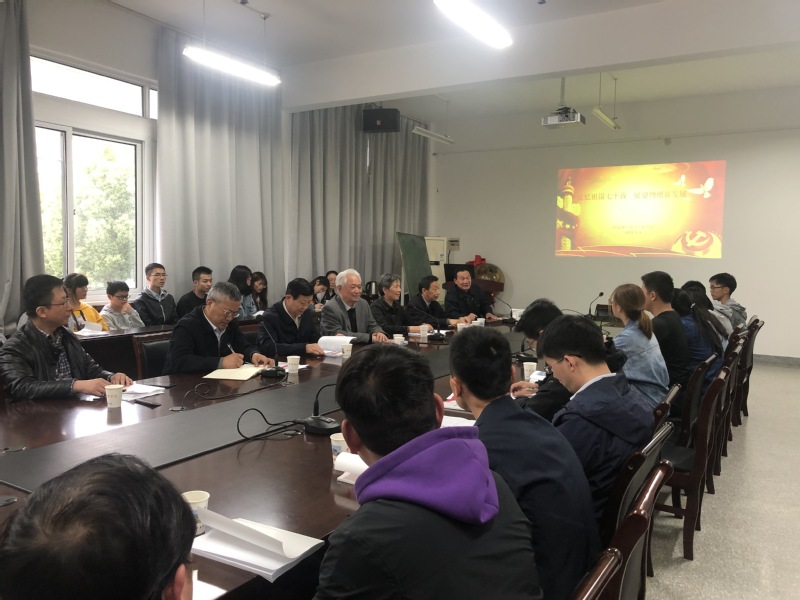 5月8日下午,mg4355vip检测中心在逸夫楼会议室举办“回眸辉煌七十载 展望物理新发展”主题交流活动。会议由学院党总支书记刘成林主持,原校长周荣秋、校党委副书记黄志纯、学院院长庄国策、退休教师沈宏兰、冯越、潘友华,学院青年教师代表以及学生代表参加。