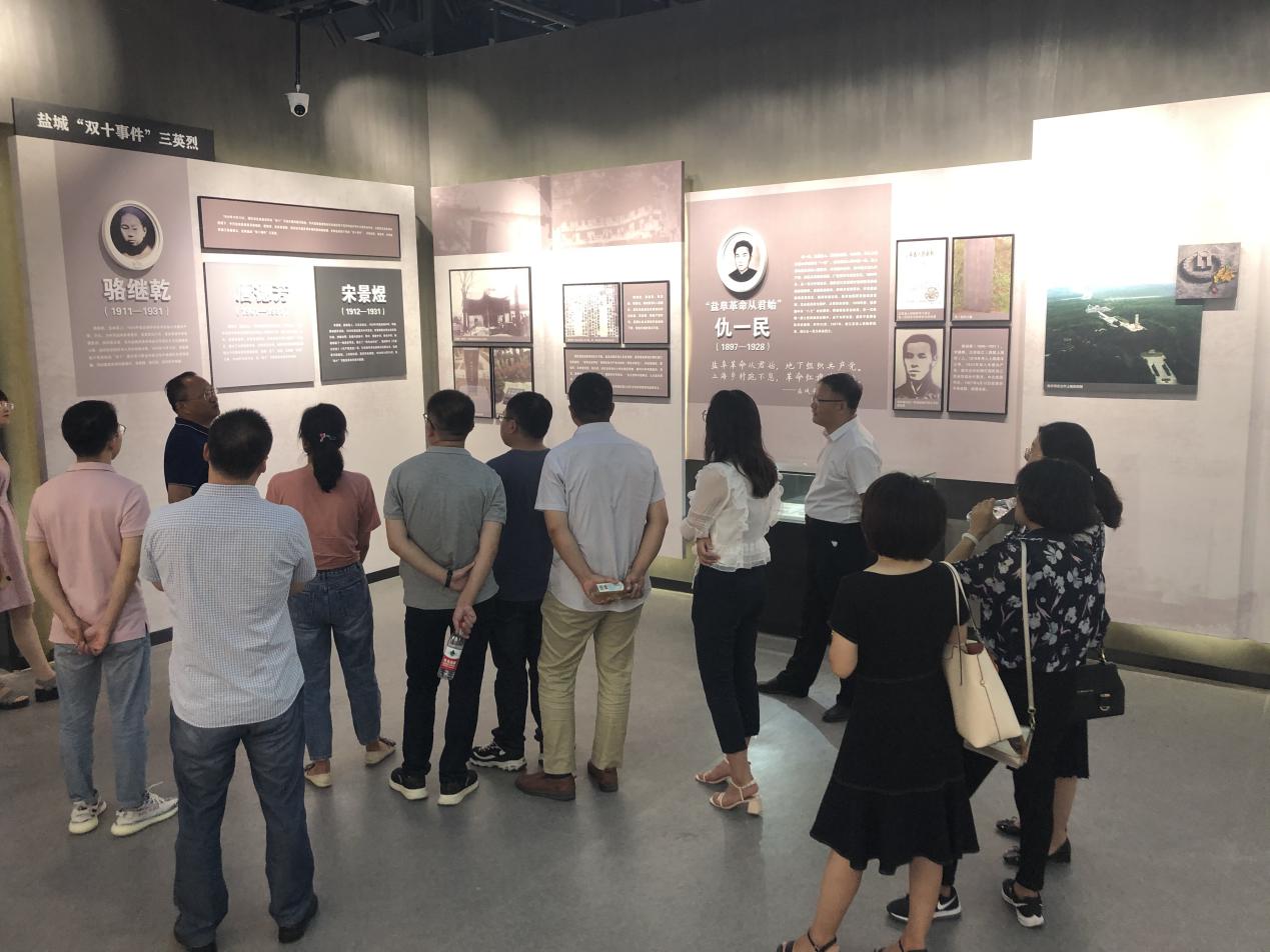 盐城市烈士陵园管理处姜定海主任介绍了陈列馆内各展厅盐阜众多革命先烈的感人事迹,他从大革命与土地革命战争时期的“碧血前驱”主题,到抗日战争、解放战争时期及解放初期各个时段的英雄事迹都做了详细解说。mg4355官网教师了解到了“盐阜双十事件”三英烈骆继乾、唐德芳、宋景煜;盐阜革命地下工作者仇一民等等六十多位盐阜革命先烈的革命事迹,感受到先烈们为了革命理想,不忘初心,舍小家为大家,面对敌人宁死不屈,待人民如亲人的革命情怀。