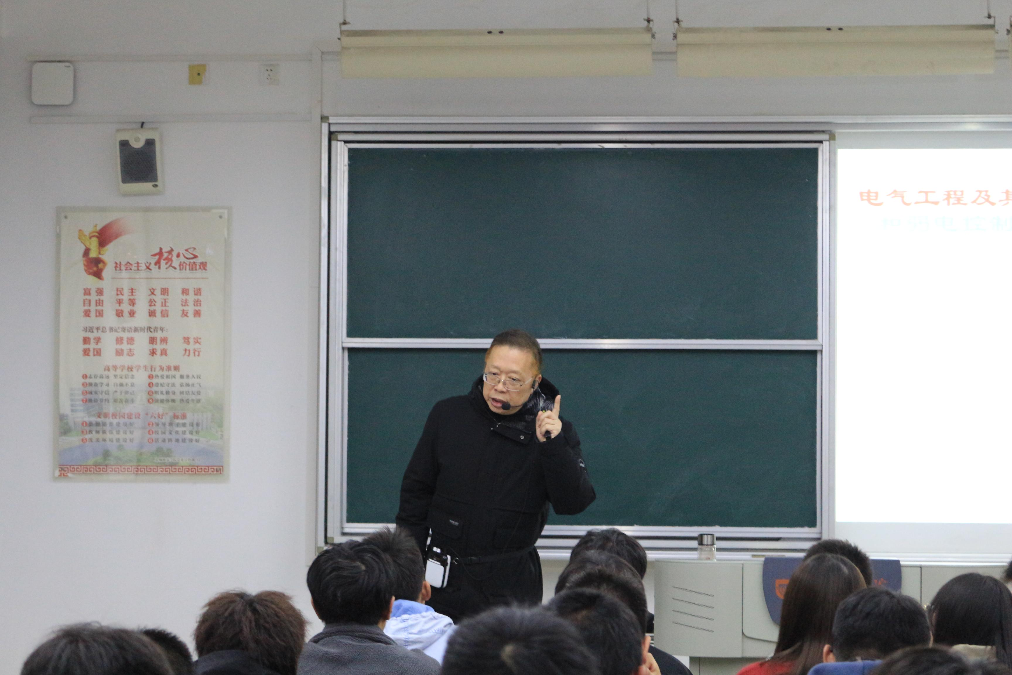 为了更好地让2021级电气工程及其自动化的学生了解自己的专业,mg4355vip检测中心于11月15日晚上七点在综合楼B401开展“电气工程及其自动化”专业介绍讲座,该讲座由电气专业负责人王荣教授主讲,mg4355vip检测中心218班与219班全体学生参加。