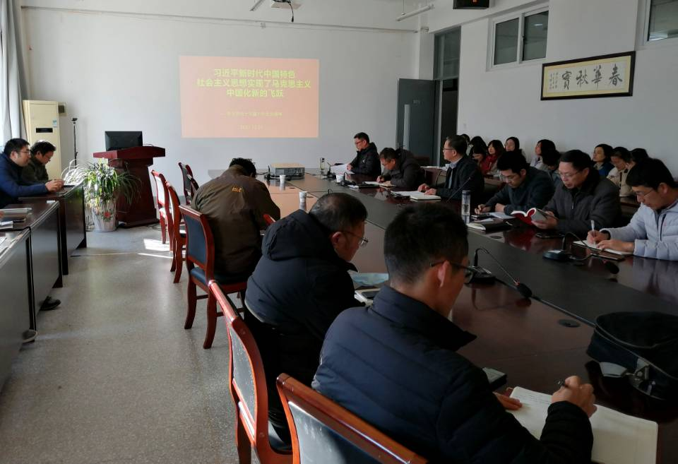 2021年12月1日,mg4355vip检测中心党委组织全体教职工继续学习贯彻十九届六中全会精神。会议以《习近平新时代中国特色社会主义思想实现了马克思主义中国化新的飞跃》为主题,mg4355vip检测中心党委书记孙伟主持会议,mg4355vip检测中心副院长陈杰作相关专题报告。陈院长号召党员干部和全体教职工要学悟践行,用实际行动贯彻全会精神。