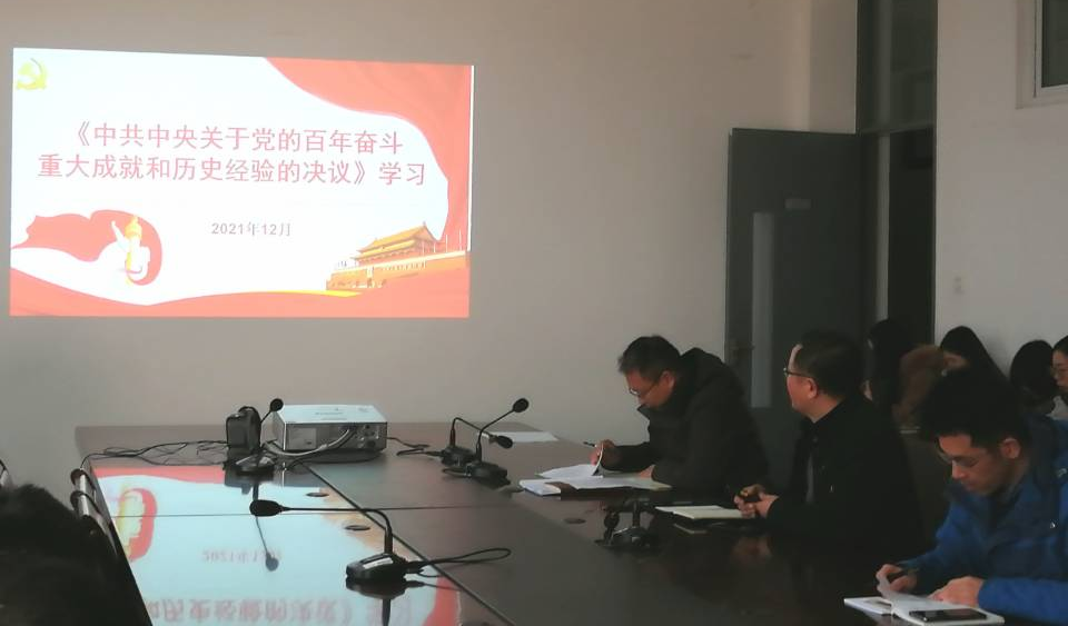2021年12月22日下午3点,mg4355vip检测中心党委组织全体教职工学习《中共中央关于党的百年奋斗重大成就和历史经验的决议》相关内容,会议由mg4355vip检测中心党委书记孙伟主持,mg4355vip检测中心全体教师参加会议。