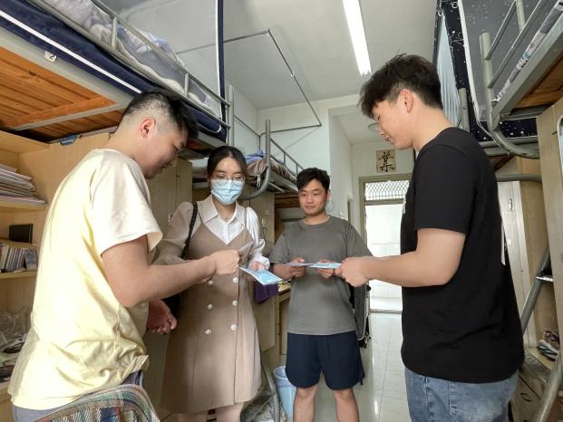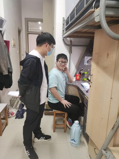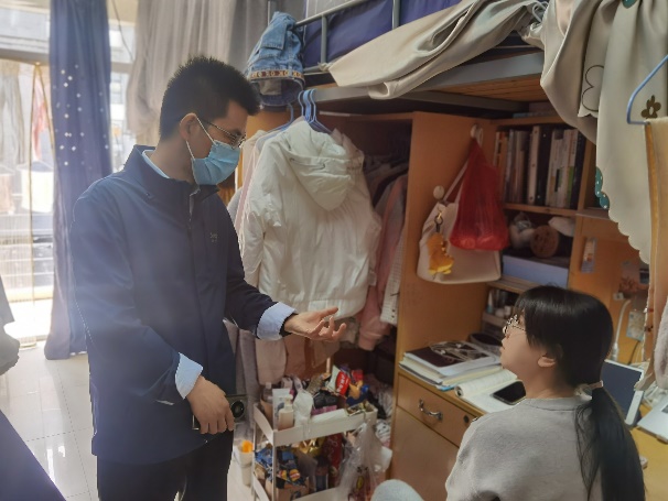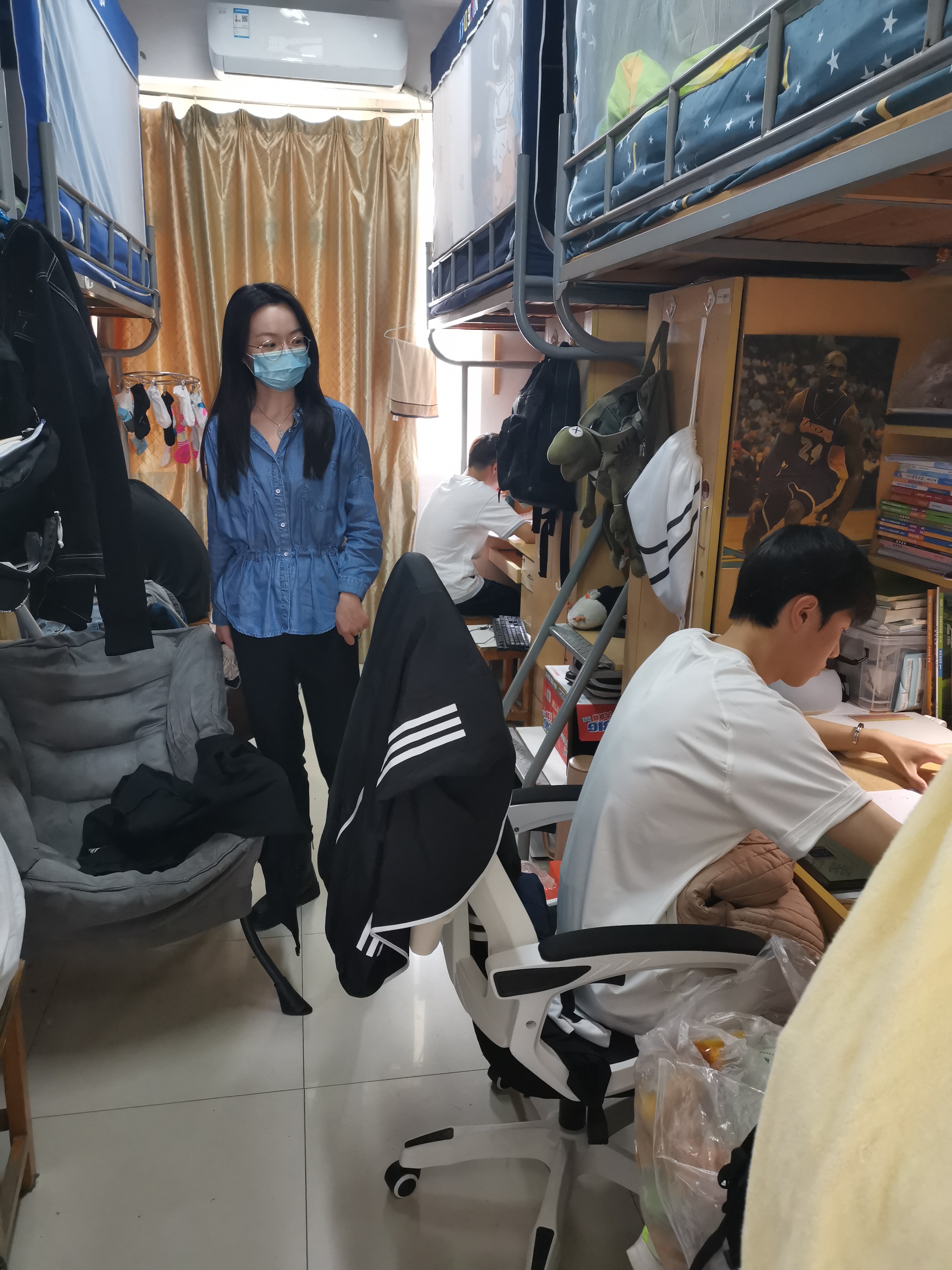 扎实做好宿舍常态化检查,确保学生安全卫生落实处。在校园封闭管理期间,学院领导与住校辅导员们多次深入学生宿舍,开展疫情防控期间学风建设督导及宿舍安全检查。在常态化走访宿舍过程中,针对疫情防控、安全隐患、卫生状况等方面重点排查,督促存在问题的同学及时整改,并始终保持与在校同学们的沟通与交流,及时了解学习生活状况及思想动态。此外,还提醒同学们要积极调整心态,认真对待线上课程,严格执行学校疫情防控的工作要求,做好个人安全防护、宿舍卫生清洁、及时开窗通风等事宜。