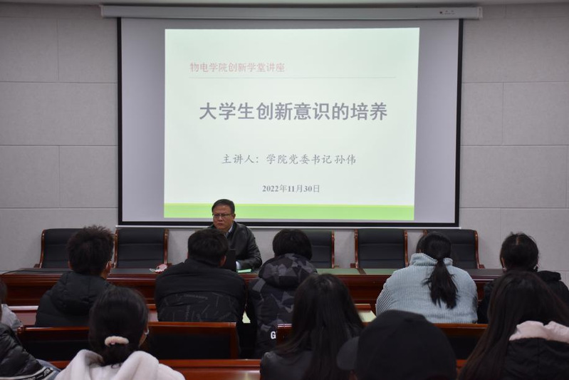 2022年11月30日下午四点,mg4355官网于逸夫楼资料室举办了2022级创新学堂开班仪式暨大学生创新意识培养讲座。