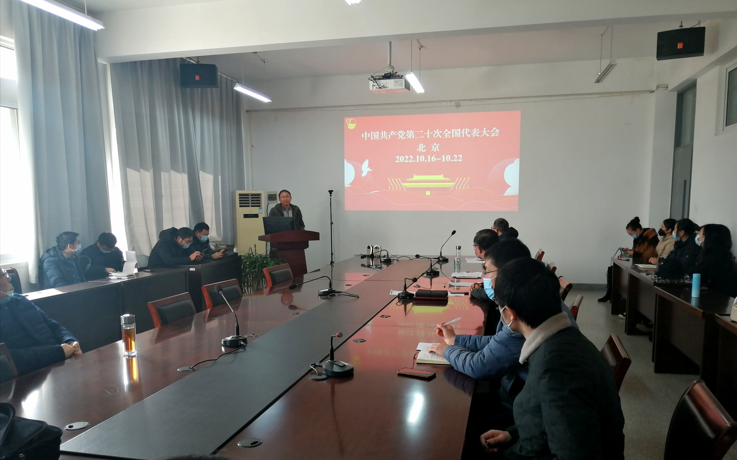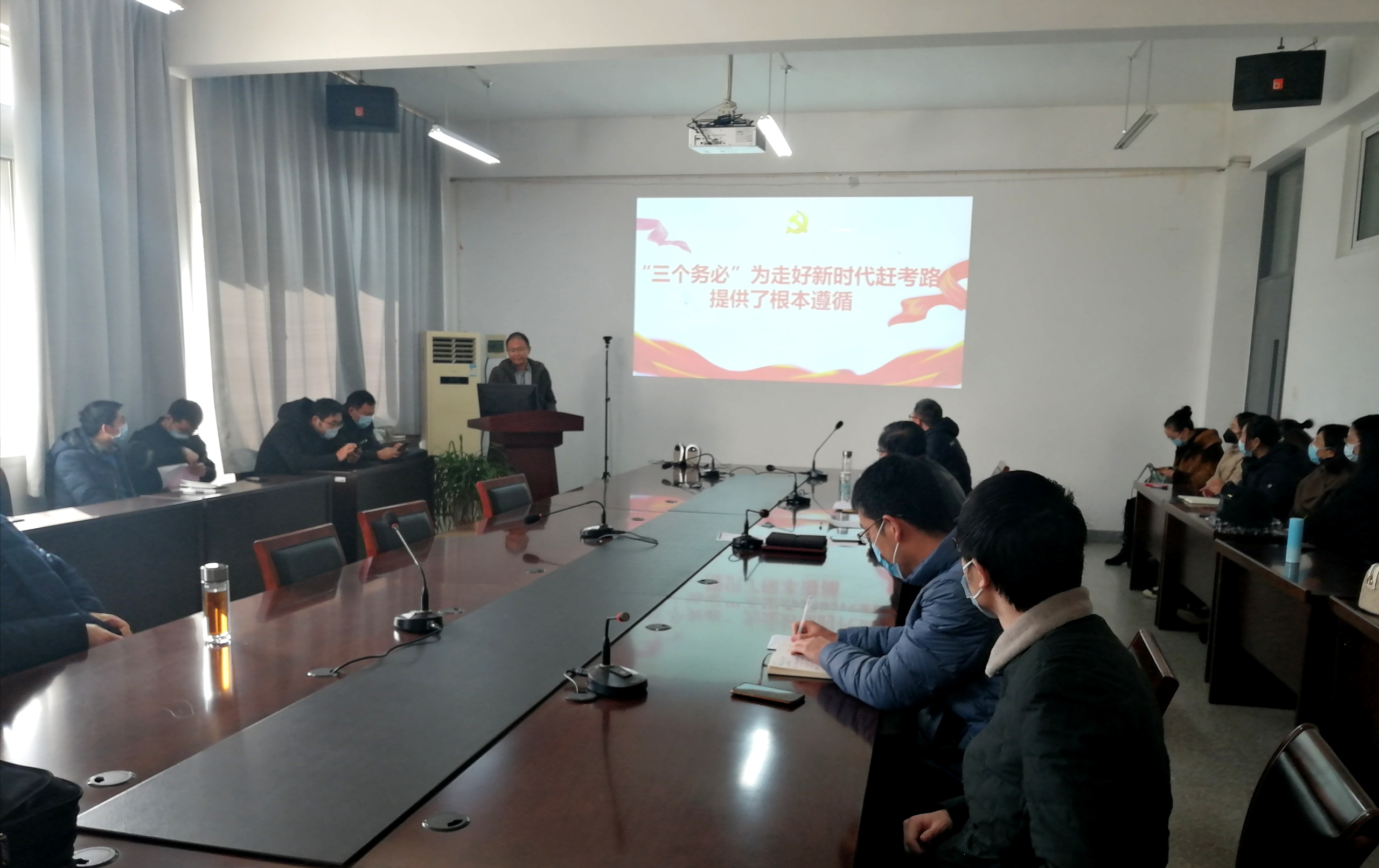 2022年12月7日下午两点,mg4355官网开展党的二十大精神宣讲会议。本次会议由mg4355vip检测中心党委书记孙伟主持,mg4355vip检测中心党委副书记雷承富主讲,学院全体教职工参加会议。会议中,雷书记作了题为《“三个务必”为走好新时代赶考路提供了根本遵循》的宣讲。