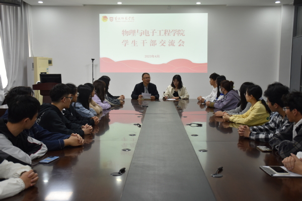 为进一步提高学生干部的综合素质,2023年4月21日,mg4355官网于逸夫楼会议室召开学生干部交流会。会议由学院党委副书记雷承富主持,团委李艳老师及学生干部参加本次会议。
