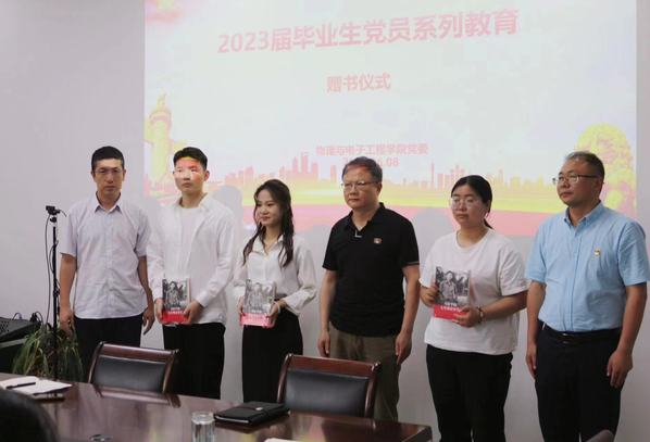 一本书赠予学生党员勉励他们担当作为。在临别之际,mg4355vip检测中心党委向每位毕业生党员赠送了《习近平七年知青岁月》一书。该书通过访谈生动描绘了青年习近平树立矢志不渝的理想追求和根植爱国为民的家国情怀,要求毕业生党员学习习近平总书记在青年时代的所作所为,争做有时代担当的青年共产党员。