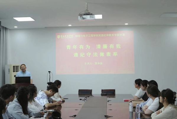 一堂廉政教育课要求学生党员坚守底线。学院党委副书记雷承富以《青年有为,清廉有我》为题为毕业生作廉洁教育,在同学们心中种下廉洁的种子。他强调毕业生党员未来不论是在学习中还是在工作岗位上都要遵纪守法做表率,坚定廉洁信念,恪守廉洁底线。