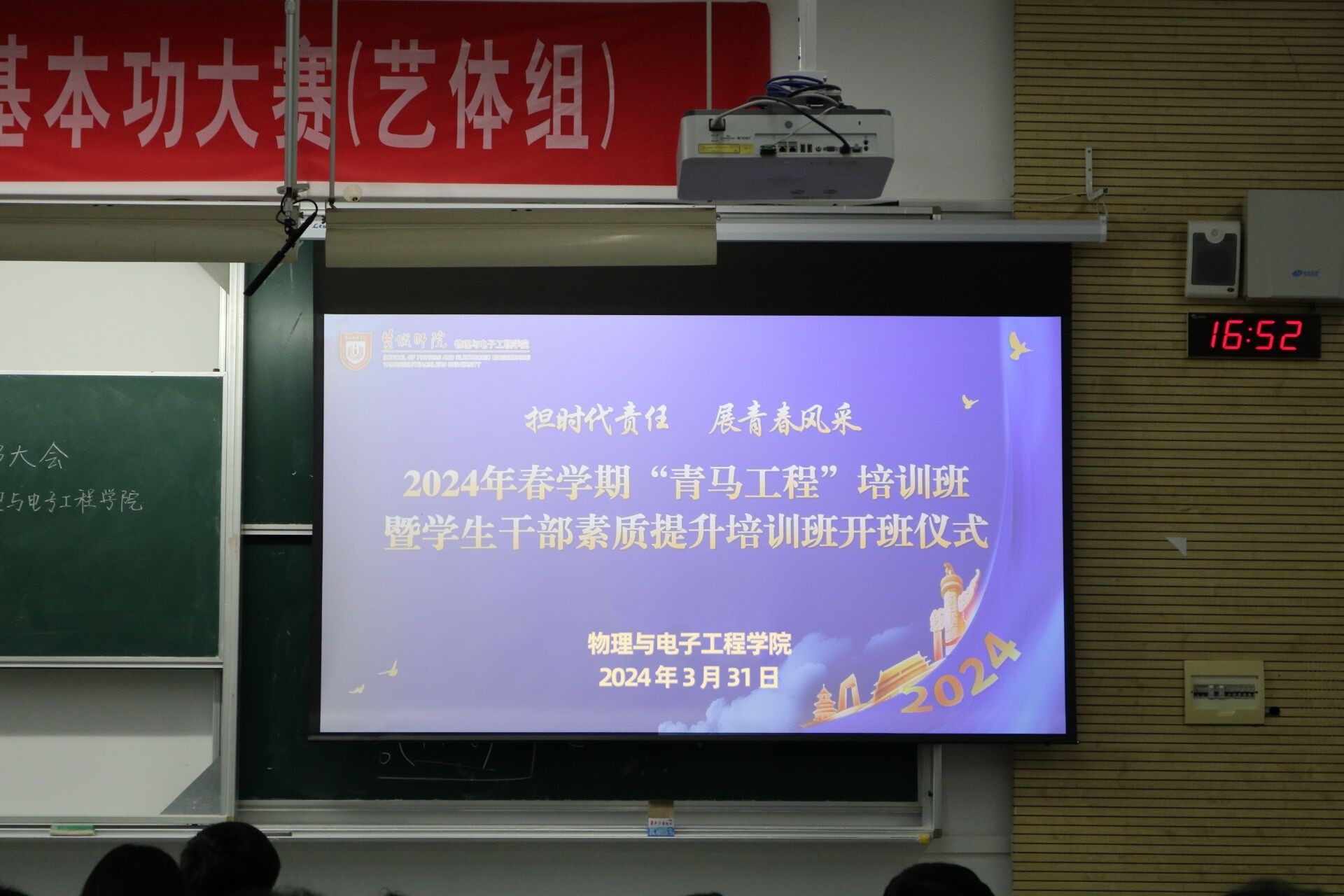 3月31日下午,mg4355vip检测中心2024年春学期“青马工程”培训班暨学生干部素质提升培训班开班仪式在公共教学楼C102举行。学院党委副书记唐杰、全体辅导员、青马学员和部分学生干部参加开班仪式。