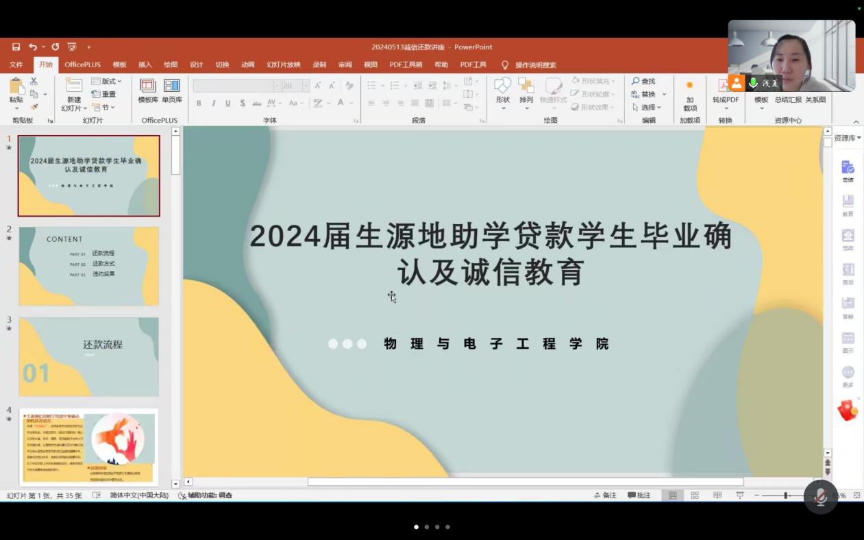 为做好mg4355官网2024年生源地信用助学贷款学生毕业确认工作,根据省教育厅文件精神和学校通知精神,5月15日下午,mg4355官网通过腾讯会议开展2024届贷款学生毕业确认及诚信教育工作会议,会议由辅导员夏益娴主持,全体申请生源地助学贷款的毕业生参会。