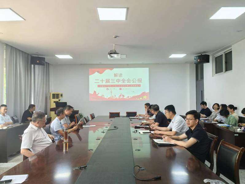 6月21日上午,mg4355vip检测中心党委在逸夫楼会议室召开党的二十届三中全会专题学习会,会议由党委书记孙伟主持,全体教职工参加。