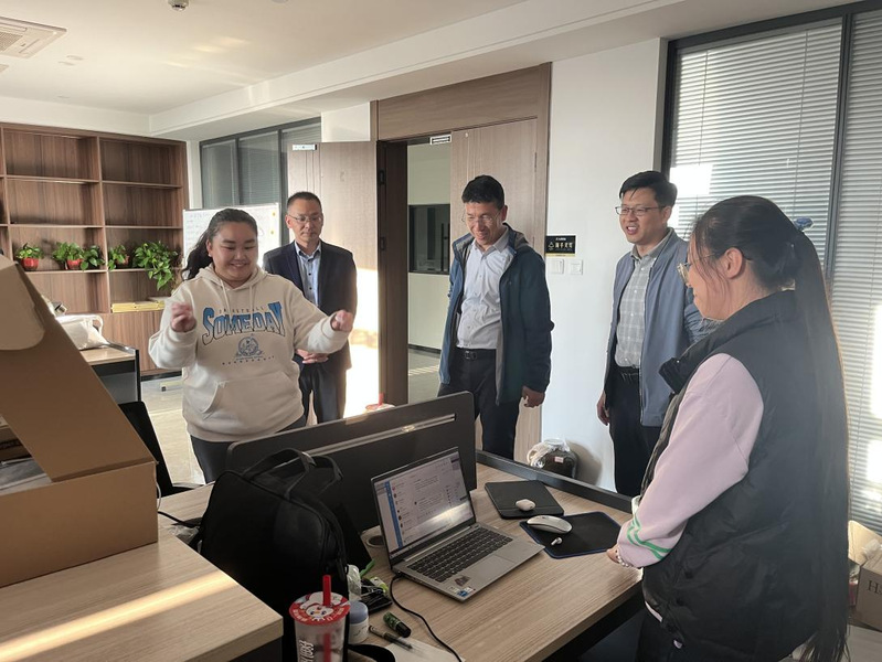 为了全面了解2021级工科专业学生在企业的实习状况,保障实习质量,推动专业建设,学院院长张志海、副书记唐杰、副院长朱成云于2024年10月30日带队赴盐南新区数字智能产业园内多家公司检查mg4355官网学生实习情况。