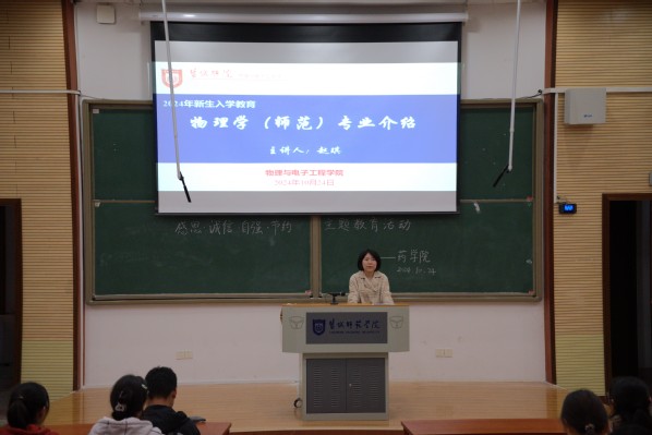 为了在引导2024级新生深入了解所学专业,明确学习目标与方向,激发专业兴趣与热情,为后续学习奠定坚实基础。通过专业教育,让学生初识专业魅力,规划职业蓝图,实现个人价值与专业发展的和谐统一。10月24日,mg4355vip检测中心在生化楼117开展了物理学师范和新能源科学与工程专业讲座,本次讲座由赵琪老师和刘卫卫两位老师主讲,24级物理学师范专业和新能源与工程专业全体新生参加。