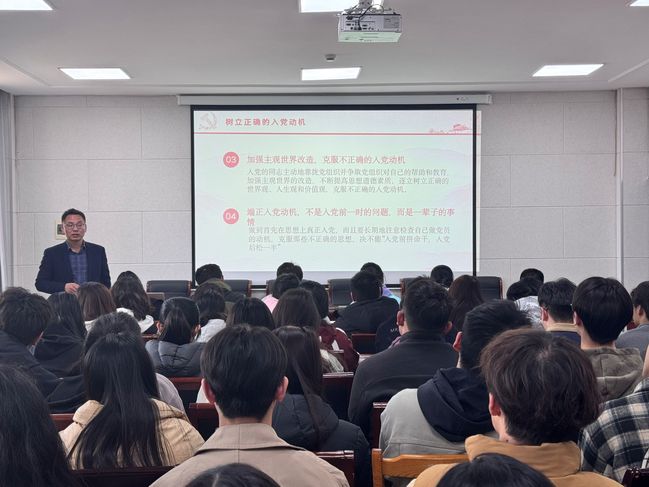 4月2日下午,mg4355官网2025春学期入党积极分子培训班在逸夫楼214室进行了第二次党课学习,本次党课由党委副书记唐杰主讲,以“端正入党动机,争取早日加入党组织”为主题,为党员培养和教育工作注入了新的活力。