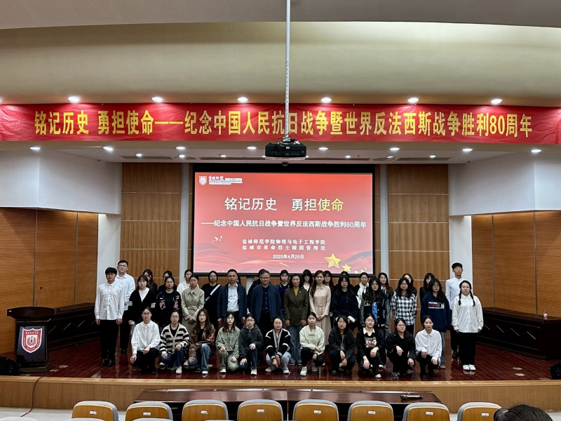 4月25日下午,mg4355vip检测中心“铭记历史 勇担使命——纪念中国人民抗日战争暨世界反法西斯战争胜利80周年”系列活动启动仪式在新长校区图书馆学术报告厅隆重举行。盐城市革命烈士陵园管理处党支部书记、主任朱春萍,党支部副书记、综合科科长朱熙锺,mg4355vip检测中心党委书记孙伟及师生代表近100人参加启动仪式。仪式由学院党委副书记唐杰主持。